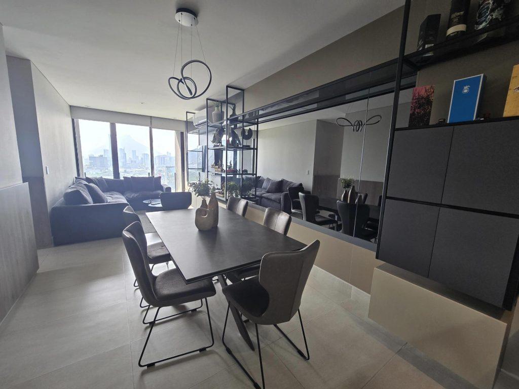 Departamento EN RENTA en BOREAL en Valle Oriente en Col. Mirador Residencial, Monterrey NL de 110 m2 con 3 recamaras + 2 baños baños, Ideal para familias y estudiantes, con una ubicación privilegiada e increíbles amenidades, totalmente equipado y amueblado, con 2 cajones de estacionamiento $55,000 MN
