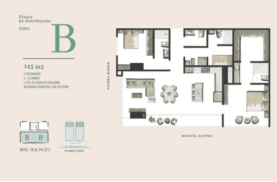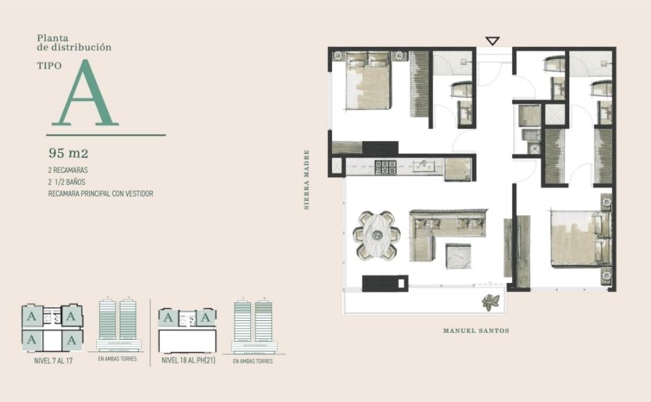 - 2 Tipologias 95 m2 y 145m2 de 2 recamaras.