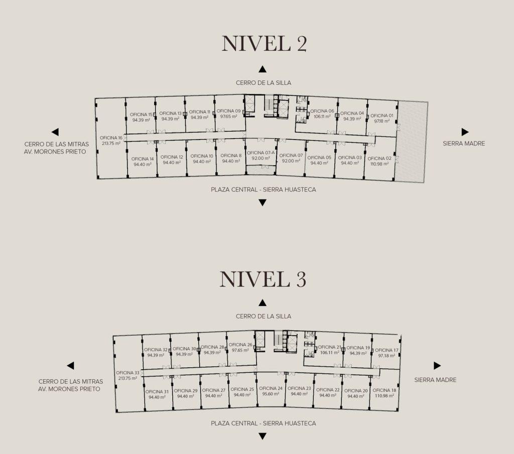 - N2 y N3 = oficinas