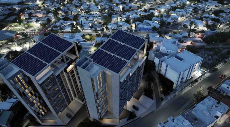 Con paneles solares, cargadores para autos eléctricos y amplias áreas verdes, transmite un estilo de vida sustentable mientras capitaliza el crecimiento acelerado de la zona.